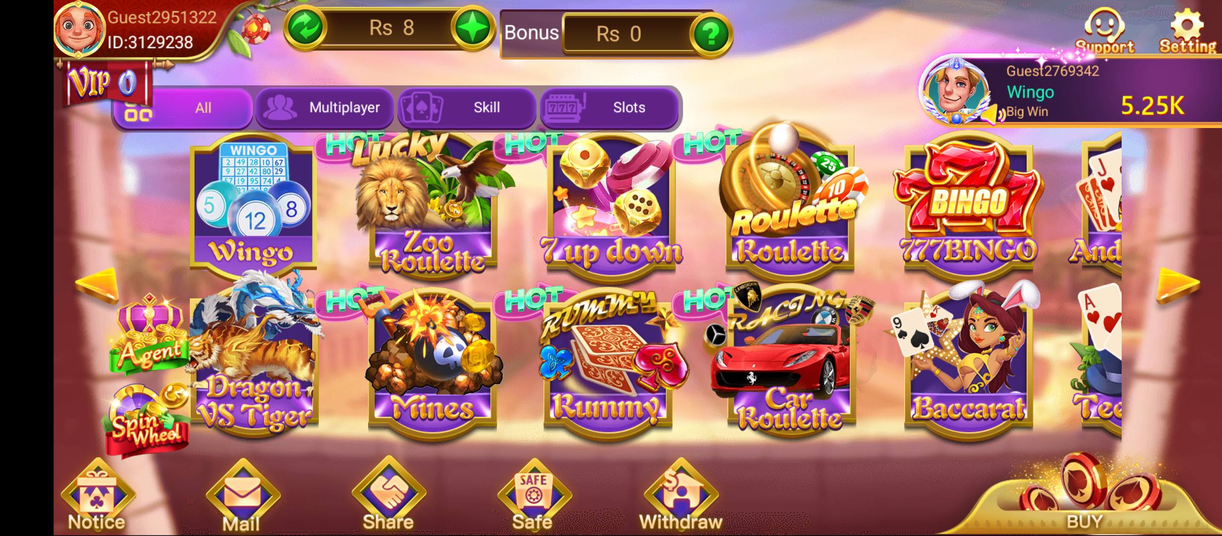 • Play and win games like Teen Patti, Rummy, and Roulette.