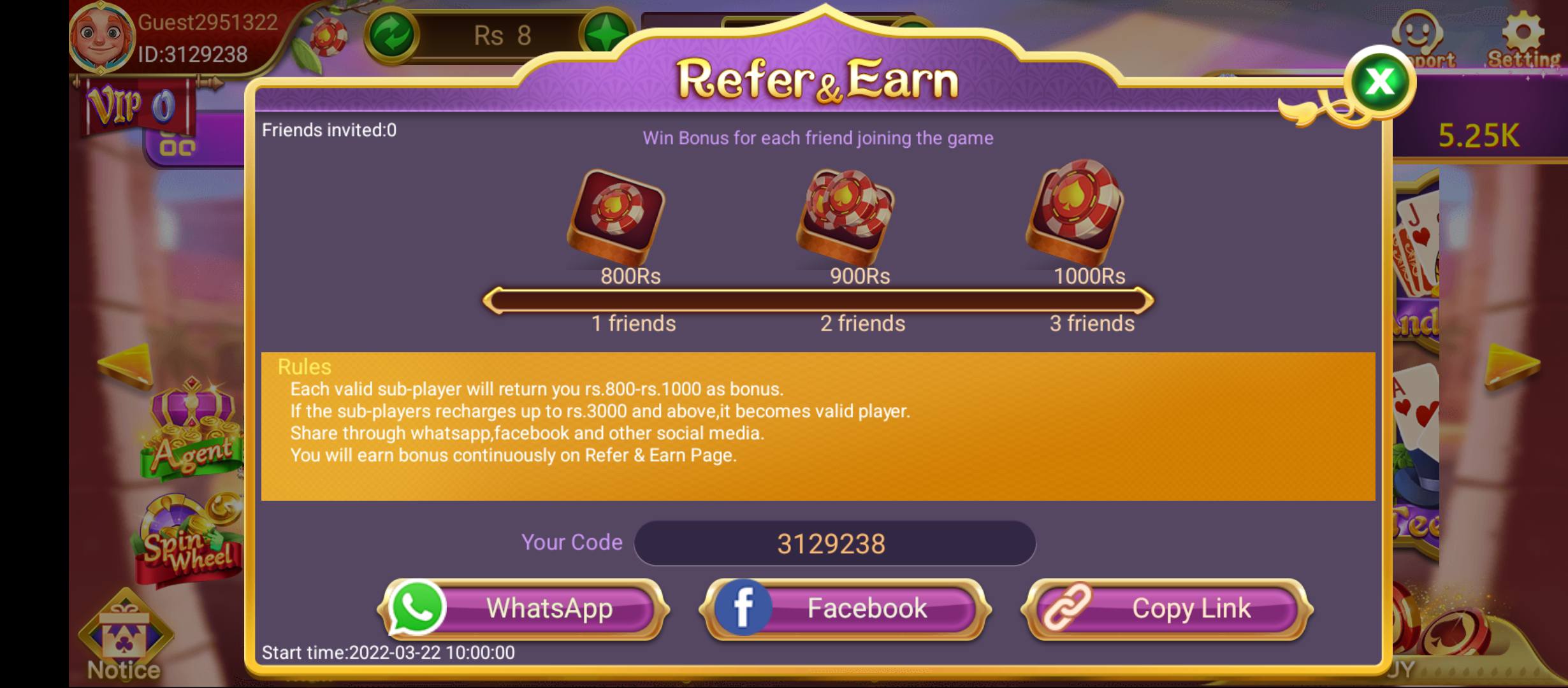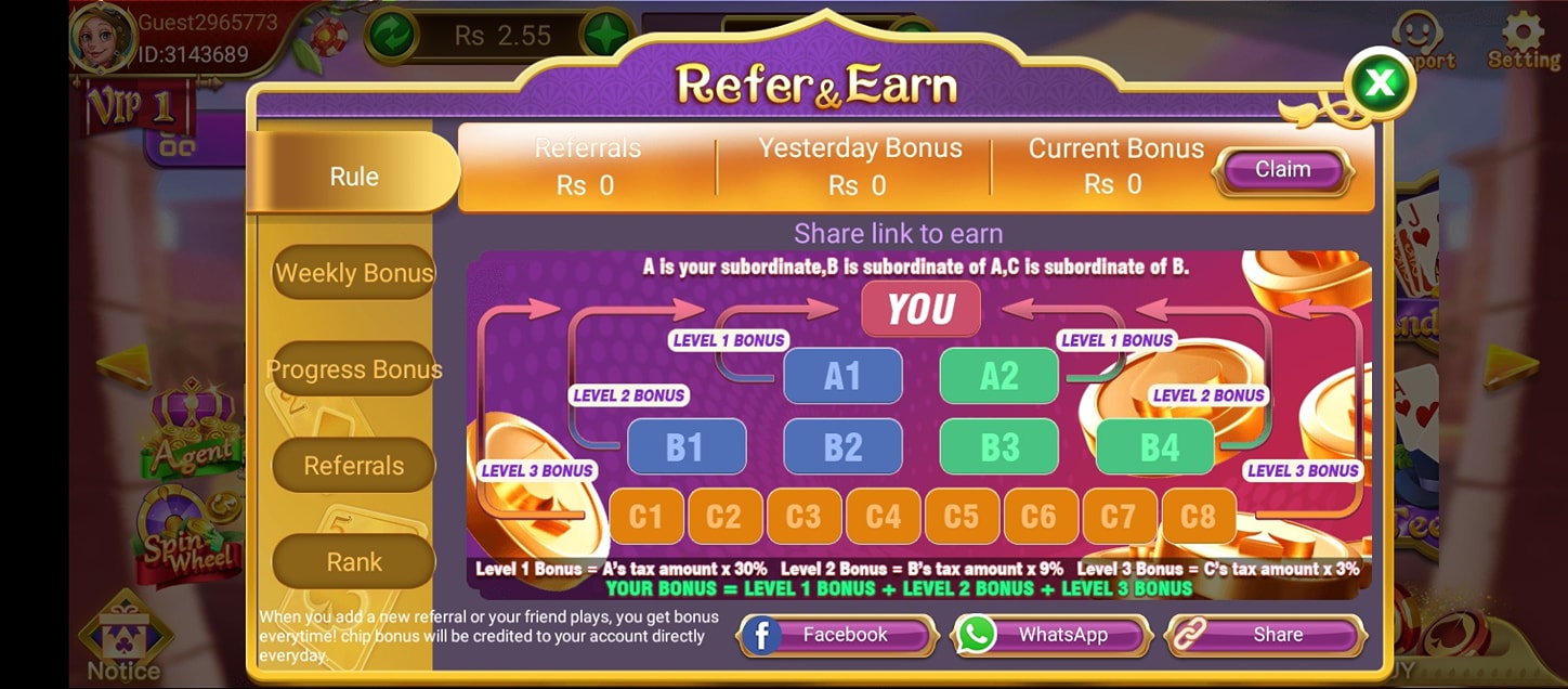 • Refer friends to earn extra rewards without playing.