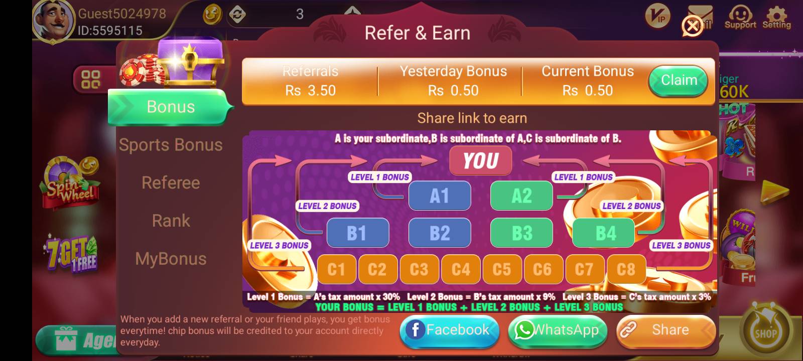Invite friends to join the app. When they register and play, you earn a referral bonus. The more people you refer, the more you can earn regularly.