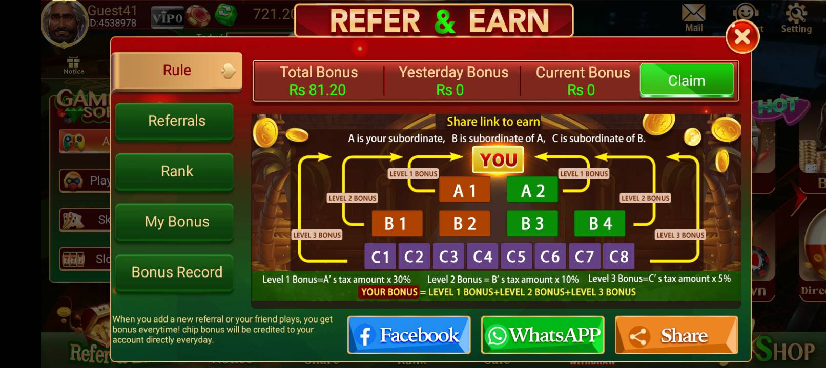 Always claim your login and referral bonuses. They give you free coins to play more.